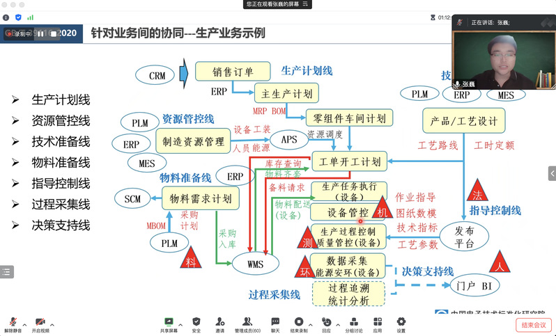 会上,中国电子技术标准化研究院CMMM高成熟度主任评估师张巍作主题报告。张巍首先对智能制造能力成熟度模型CMMM的构成与要素做了解析,然后针对CMMM在生产单元、车间、工厂、供应链等不同层级的应用思路做了介绍,并总结了不同等级企业智能制造建设的关注点和建设路径,最后从CMMM的指标维度对业内某知名动力电池企业的智能制造建设情况展开讲解,包括顶层设计、战略规划、实施项目、人员组织、装备、生产作业、仓储配送等多个维度。讲座专业性强、内容丰富,既有前沿理论,又有实践案例,受到与会人员的高度评价。
