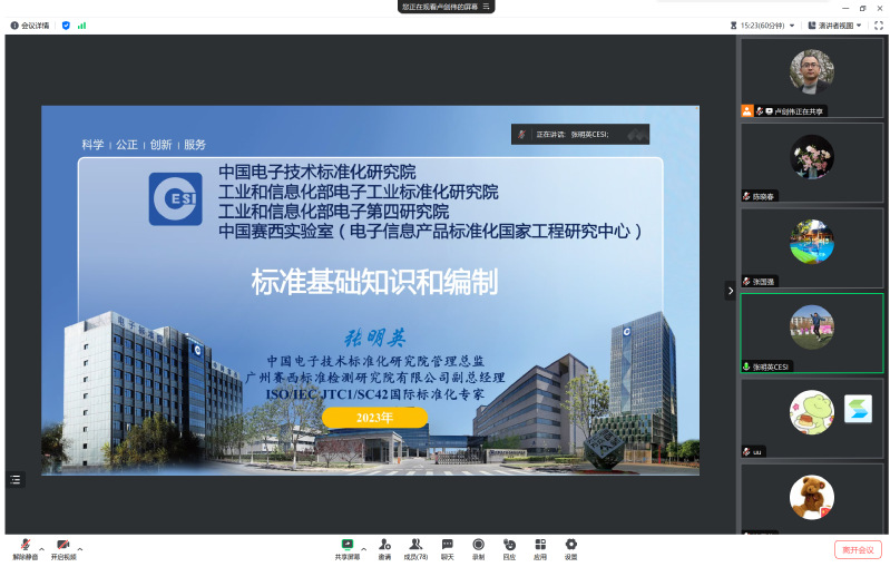 会上,中国电子技术标准化研究院总院管理总监、广州分院副院长张明英作主题报告。张明英首先对标准相关基础知识做了详细介绍,然后从产业数字化、数字产业化、未来展望等三个方面阐述了标准化对于产业发展和数字化变革的价值,特别是针对学校师生在数字化大潮中应关注的标准化机会做了讲解。讲座专业性强、知识覆盖面广,既有前沿理论,又有实践案例,受到与会人员的高度评价。