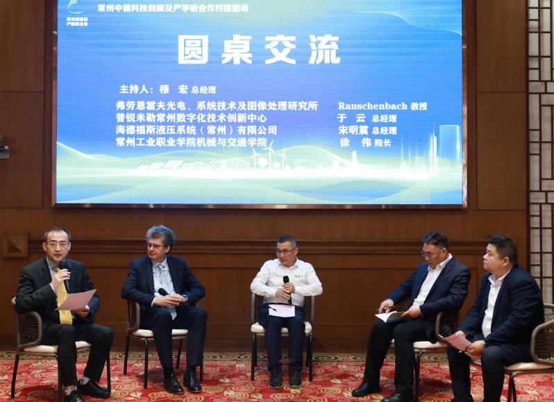 圆桌交流环节,穆宏作为主持人,围绕数智化时代“产教融合的企业需求、人才培养及合作模式”“职业院校与科研院所如何针对企业人才、技术、科技创新进行合作”等主题,访问了弗劳恩霍夫研究所托马斯·奥申巴赫教授、海德福斯液压系统(常州)有限公司总经理宋明震、普锐米勒常州数字化技术创新中心总经理于云和我校机械与交通学院院长徐伟。